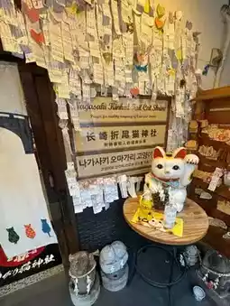 There is a "Curly-tailed Cat Shrine" near Spectacle Bridge, Okumagari Cat Shrine, which enshrines the Kirin-tailed Cat, the ancestor of the local Western cats, which refers to a cat with a tail curled up like a key. According to legend, they are "lucky cats" that can bring good luck with their tails. Compared to the real shrine, it actually looks more like a shrine than a cat boutique. It has everything you would expect from a shrine, including torii gates, fortune sticks, donation boxes, and the opportunity to ask for goshuin, as well as a ton of cat merchandise. Friends who like cats should not miss this shrine when they come to Nagasaki