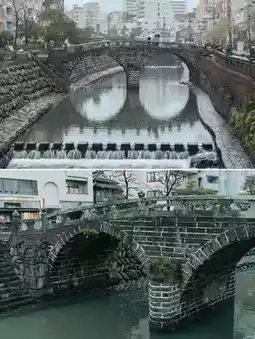 Japan's first Tang-style stone bridge, built in 1634. The bridge reflected on the water looks like glasses.