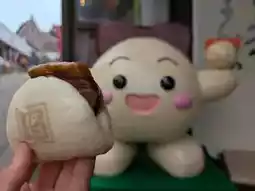 -🍜 kakuni manju, a thick slice of kakuni (see above) in a soft bread bun (manjuu / mantou).
