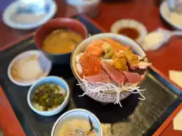 The seafood bowls (kaisen-don) were outstanding, with beautifully arranged slices of sashimi that tasted incredibly fresh. But the cooked seafood dishes also impressed us—the tempura, grilled fish, and other warm options added nice variety to our meal. It felt like a true feast of the ocean.