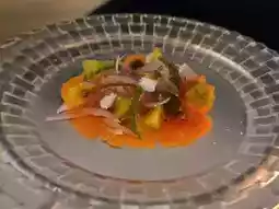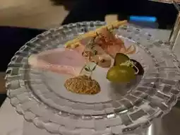We start with sparkling wine. After a while, a three-tiered tray arrives. The composition here is characterized by the exclusion of sweets. The bottom is cheese and nut moriawase, and the middle is charcuterie and olive moriawase.