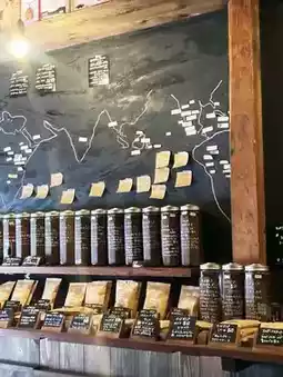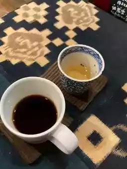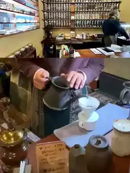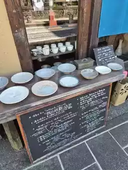 This hidden teahouse has a rather long name: Coffee Bean - Circle - Triangle - Square (ナカシマガワノエン マルサンカクシカク). It's probably easy to spot by the layout of the entrance. Renovated from an old Japanese house, the shop boasts high ceilings, creating an open feel. The floors and beams feature rustic wood grain. The shop displays a wide variety of coffee beans, tea leaves, and elegant pottery, creating a cozy and lovely atmosphere. They sell coffee beans and herbal teas, which can also be enjoyed inside. The hot water is heated over a charcoal fire, not by electricity. While the language wasn't completely intelligible, the owner's sincerity was palpable. I ended up buying dark-roasted beans from Madagascar and some Japanese pottery.
