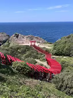 Motonosumi Shrine in Nagato City, Yamaguchi Prefecture, is known as a scenic spot with 123 red torii gates leading to the Sea of Japan. Due to its beauty, it was selected as one of CNN's "31 Most Beautiful Places in Japan," and many tourists from both Japan and abroad visit the shrine.