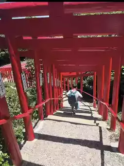 Located in Nagato City, Yamaguchi Prefecture, "Motonosumi Shrine" is a stunning spot featuring 123 red torii gates that line the path towards the sea✨. Perched on a cliff, the shrine offers a panoramic view of the Sea of Japan, allowing visitors to immerse themselves in an extraordinary world surrounded by the sounds of wind and waves🌊. Walking through the tunnel of torii gates towards the sea feels like stepping into another realm. On sunny days, the contrast between the blue sea and the red torii gates is especially photogenic📸. The shrine is also home to the "most challenging offertory box in Japan," providing a unique and memorable experience for travelers!