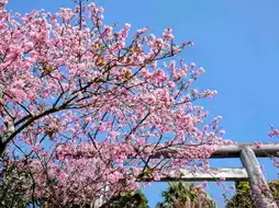 You can enjoy cherry blossoms in late January! In the bay of Nago City in central Okinawa, there is a famous cherry blossom viewing spot called "Nago Castle Park". There are more than 10,000 Kanhizakura trees planted in the park. You can stroll along the approximately 2-kilometer trail and look down at the stunning sea view of Nago Bay and cherry blossoms in the distance.