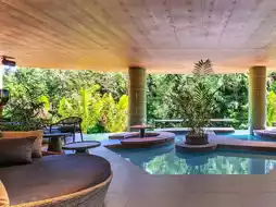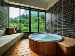 The jacuzzi opens out to a forest, making it a truly magical hot spring retreat. 🌲