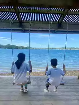 Swinging on a swing overlooking the azure ocean is truly refreshing. Let go of all your worries and fully enjoy your vacation. 😎