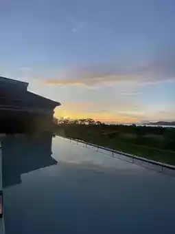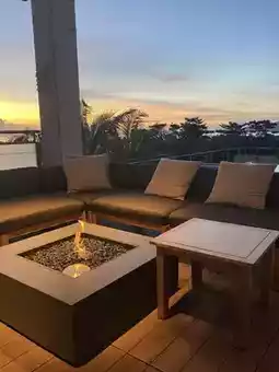 From the terrace, you can enjoy views of the blue sea and sky, and at dusk, a dramatic sunset.