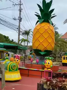 You can even ride the Pineapple Train 🚃, making this a fun theme park for kids!