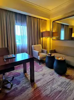 Our spacious and warmly furnished suite was clean and comfortable, featuring a cozy living area. It came with free Wi-Fi, flat-screen TVs, tea & coffee-making facilities, a minibar, and a safe. Room service was available 24/7, which made our stay even more pleasant.
