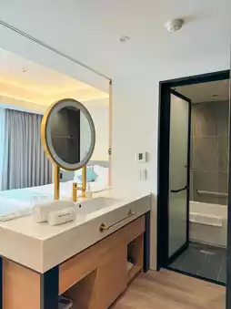 The hotel's interior and exterior designs are fresh and simple. The rooms are semi-open and come with a full range of equipment and toiletries, even skin care and makeup removers! Very friendly to female guests and the room is comfortable!