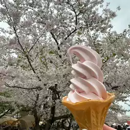 In a corner of the park, cherry blossom ice cream is the unique delicacy here. The pink ice cream is as gorgeous as cherry blossoms, melts in your mouth, and the sweet taste is intoxicating. Enjoying the flowers while tasting this delicacy is simply the best enjoyment of spring.