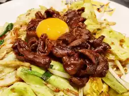 The counter seating offers a view of the kitchen where the vegetables are stir-fried, primarily bean sprouts and cabbage, with offal and a raw egg yolk added at the end. The portion is generous. The stir-fried vegetables are a specialty of the shop, with crispy cabbage and bean sprouts paired with rich and savory offal. On its own, the dish might be a bit salty, but when mixed with the egg yolk and vegetables, it becomes perfectly balanced and pairs wonderfully with white rice. The ramen here also comes topped with plenty of stir-fried vegetables, making it a must-try for ramen lovers.
