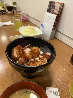 When visiting Nagoya, you'll find a very famous tonkatsu restaurant that you might notice from its signboard near the subway station. Indeed, it's incredibly popular, with long queues and delicious food. Their specialty is miso soy sauce tonkatsu. However, I recommend asking them to use less sauce as it can be quite heavy in flavor. The tonkatsu itself is absolutely delicious. Just look at the photos—the pinkish pork cutlet looks exquisite. After finishing the meal, we still craved more, so we bought an adorable piglet shawl from the small gift shop at the entrance. We now use it at home on our bed as an air-conditioning blanket, and it can also transform into a super cute piglet plush toy.
