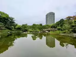 Located near Atsuta Jingu Shrine, the Japanese garden covers an area of about 3.7 hectares and is the largest urban garden in the Tokai region. It is designed based on the topography of the Chubu region: the mountain symbolizes Mt. Ontake, the stream represents the Kiso River, and extends to the pond like Ise Bay, showing the story of water from the source to the sea. It is a typical Japanese garden with a pond and spring circulation style in the Edo period.