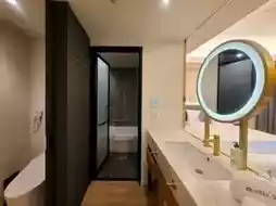 This type of room seems to be popular in Korea these days. They offer a studio-style room with an open bathroom and bedroom, creating a sense of openness. This one has sliding doors that can be opened and closed.