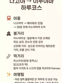 * Key Point: One of the oldest surviving castles in Japan, it is a designated National Treasure. Located next to the Kiso River, it boasts beautiful scenery, with the views from the castle being particularly spectacular. * Rating: 4.8/5