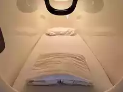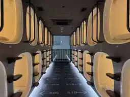 The capsule-style rooms feature a futuristic design that feels clean and spacious, avoiding any sense of confinement. With separate areas for men and women, it is safe and convenient for solo travelers. The shower rooms and amenities are well-equipped, making it ideal for short stays or transit trips. The shared lounge is simple yet modern, providing a comfortable space for relaxation.