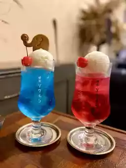 The interior has that classic Japanese coffee shop look: warm lighting, wood tones, vintage furnishings, and a relaxed air that invites you to linger. I ordered the cream soda and a parfait, both of which were not only delicious but incredibly photogenic. The vivid green of the soda, topped with a generous scoop of vanilla ice cream and a cherry, instantly brought a smile to my face. The parfait was beautifully layered and full of flavor—perfect for a mid-afternoon treat.