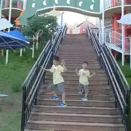 🌼The park area is very large, there are many stairs, parents accompany play to be mentally prepared😂 The super long slide is not a roller, do not be afraid to play to pat pat pain, but it is very slow, the two brothers do not feel exciting. There is a small sand pool in the middle, and there are also rides for young children. This park has older facilities, and if I didn't live nearby, I think I could not go there to play.