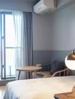The size is compact, but when you open the curtains, there is a small terrace and an ocean view, so it feels open.