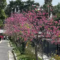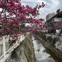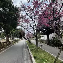 Yogi Park in Naha City Center is a perfect blend of nature and culture, making it an ideal spot for cherry blossom viewing. Its greatest advantage is its convenient location, easily accessible by foot from the monorail station, making it suitable for solo travelers and family outings. During spring, a row of Taiwan cherry trees along the riverbank blooms with vibrant pink flowers, reflecting beautifully on the clear river surface, creating a romantic and poetic scene. Inside the park, there is a steam locomotive display, located next to the Naha City Central Library, adding a touch of artistic and local life ambiance. Unlike other tourist spots, Yogi Park offers a tranquil and leisurely atmosphere, making it a great place to enjoy cherry blossoms and find inner peace. At dusk, the sunset glow illuminates the cherry blossoms, creating a particularly stunning view, making it a paradise for photography enthusiasts. It is highly recommended to plan a half-day trip in the city to stroll, take photos, or relax here. Definitely worth a visit.