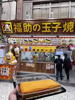 Figure 4️⃣ Fukusuke's Tamagoyaki. I accidentally bought a large portion of tamagoyaki. I recommend sharing it with many people. It tastes sweet and thick!