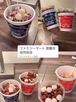 Recommended: White fluffy shaved ice topped with plenty of brown sugar and red kidney beans 🍧 You can easily experience Okinawa Zenzai at Family Mart ♪