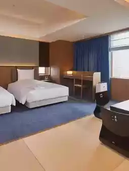 Guest rooms start at 30 square meters, which is considered spacious in Japan. The hotel has 13 floors and 260 rooms, with some suites featuring tatami-style rooms. Upon entering, you’re greeted by bright windows that offer views of the sunset. The large desk and complimentary mini bar are appealing features, while the soft lighting and comfortable bedding create a clean and tranquil environment that instantly makes you feel at ease.