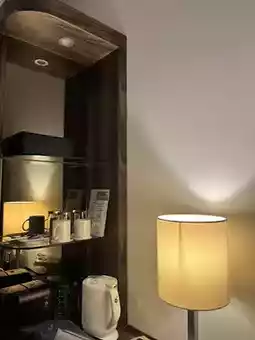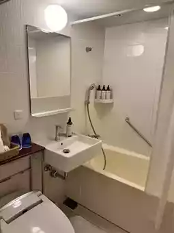 Coffee pot, bottled water, slippers, and amenities (toothbrush/razor, etc.) are provided as standard