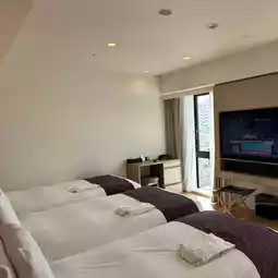 The hotel is conveniently located near several shopping centers. There's a gym and 7-Eleven downstairs, and a FamilyMart is nearby. A simple breakfast is available at the hotel, and Matsuya is also nearby.