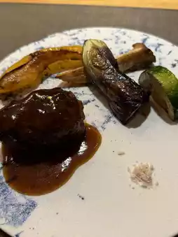 * Yaeyama Ishigaki beef fillet framed in black truffle sauce and red wine salt