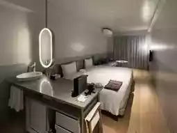 Check-in is on the second floor, about an eight-minute drive from the bustling Kokusai-dori. Electric scooters are available for rent on the first floor, making it quite convenient. We booked an Art Double Room, a spacious and comfortable room with high ceilings. Each room also has a balcony overlooking the sea, offering stunning views.
