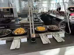 Breakfast was buffet-style, featuring exquisite and delicious dishes. Enjoying the harbor view from the floor-to-ceiling windows was a refreshing experience. However, window seats are popular, so arrive early to secure one.