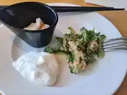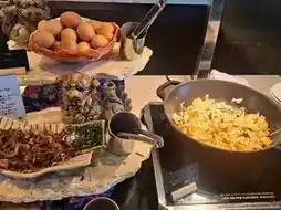 The freshly cooked sunny-side-up eggs were also outstanding, with slightly runny yolks, paired with hash browns and a touch of ketchup—just right. The Japanese section offered seaweed, pickles, tofu, natto, and bitter melon salad, among other small dishes. My husband noticed many Japanese guests wrapping rice with seaweed, which seemed like a breakfast ritual for them.