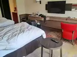 The room was clean and bright, with warm tones. The red and beige color scheme added a touch of mature Okinawan style. The beds were very comfortable, and the twin bed setup was perfect for us. Amenities were comprehensive, including toothbrushes, razors, cotton swabs, slippers, all of good quality. The bathroom was standard but very clean, with stable water pressure.