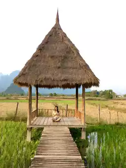 Lost in the beauty of Vang Vieng’s paddy fields, where golden sunlight kisses emerald-green landscapes. The wooden pathways lead to quiet retreats, framed by towering karst mountains. A place to breathe, reflect, and embrace nature’s rhythm. Every moment feels like a dream, from sunrise serenity to sunset warmth. Here, time slows, and the soul feels lighter. This is the heart of Laos, untouched and mesmerizing.