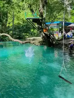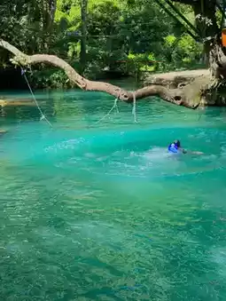 #Rainy season attractions Blue Lagoon 1 One of the most popular places that anyone who comes to Vang Vieng must check in. It is a place suitable for relaxing, letting your mind go with nature. There are many fun activities to do here. Most people come to play in the water, jump into the water for fun. There are many shops around. It is also suitable for people who want to come and eat with a chill atmosphere. The papaya salad and grilled chicken here are very delicious!! Anyone who comes to visit Vang Vieng, I recommend coming here.