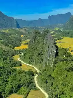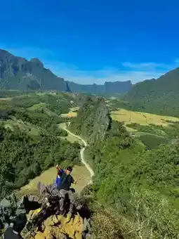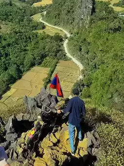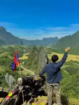 #Rainy season tourist attractions Pha Nam Sai, Vang Vieng, Laos This is a 360-degree viewpoint. The highlight is taking a photo with a motorbike with the Lao flag. It is a must-see photo spot in Vang Vieng!!