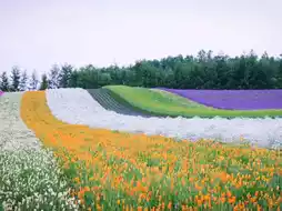 Tomita Farm is a famous summer flower viewing spot in Hokkaido. The best time to see it is around mid-July. The lavender fields and many other flowers bloom together beautifully. You can take pictures from any angle.