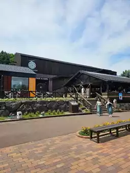 On the wooden deck overlooking Mt. Tokachi, you can sit on the sofa and enjoy the view while savoring the melon. There is also a viewing terrace and plenty of photo spots.
