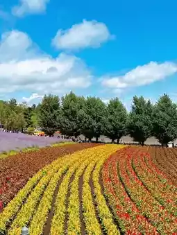 🌾 Farm Tomita is perhaps the most famous flower farm in Hokkaido, celebrated for its picturesque landscapes that stretch as far as the eye can see.