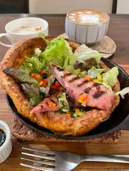This cafe offers both savory and sweet Dutch baby pancakes,