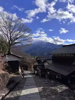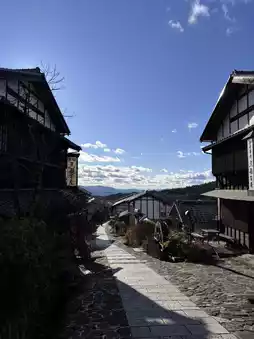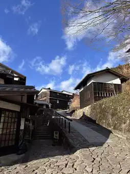 Take a bus from Nakatsugawa Station for about 30 minutes to Magome-juku. At the entrance, on the left-hand side, there is a visitor center where you can store your luggage or send it to Tsumago-juku. It's usually not crowded and incredibly beautiful. There are some small shops selling crafts, sake, and other items. There's also a delicious soba noodle shop. You can buy sake here, especially from the small shops a bit further up. There's an old lady's shop that sells sake very cheaply.