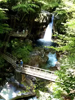 It has been selected as one of the 50 best waters in Gifu Prefecture and has a drop of 12m!! It is a dynamic and mysterious waterfall.