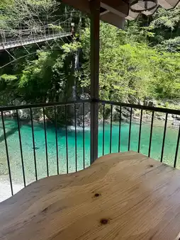 This is a scenic spot where you can enjoy a char-filled lunch while overlooking the emerald-green river. ✨