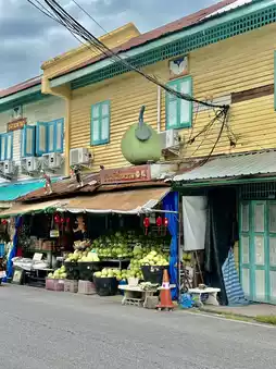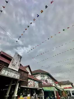 We stopped by to do some business in Nakhon Chai Si and happened to pass by Thana Market, so we decided to stop by for a walk. Let me tell you, the atmosphere here is great. It has a warm old market feel, and there are also many chic shops to walk around and see.