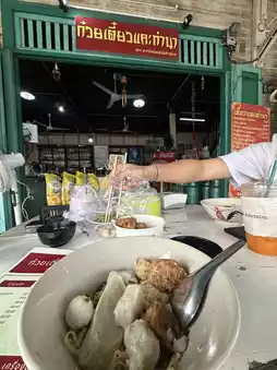We stopped by Thana Khae Noodles, which had soft noodles and a delicious soup. The highlight was the homemade Khae meatballs, which were chewy and full of flavor. Finally, we finished off with fried taro, which was unlike any other because it was crispy on the outside and soft on the inside. Most importantly, it wasn’t greasy at all. It was so delicious.