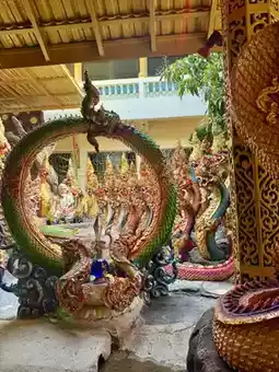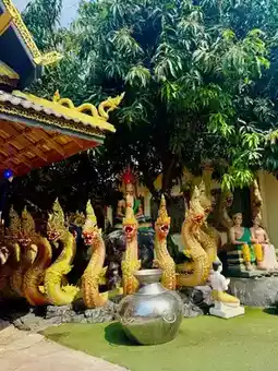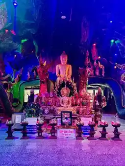 Cast from brass, it's enshrined in the golden viharn. Those who pay their respects and pray with determination will be blessed with good fortune, prosperous business, and freedom from poverty throughout their lives. ✨ • The Naga Cave 🐍, which recreates the atmosphere of the underworld, features over 1,000 statues of the nine-headed Naga and various Naga families. People often enter the Naga Cave to worship and pray for blessings, particularly for good fortune, prosperity, and protection from the Naga, believed to bring good things to life. Other sacred deities include Indra on Erawan, Rahu, Thep Thanjai, Thao Wessuwan, and Luang Por Pak Daeng, all of whom are revered for their auras. Various merit-making activities are also held, such as paying homage to the Buddha, donating phaapaa offerings, and warding off bad luck. ▶️ If you're in Nakhon Pathom, don't forget to check in here.