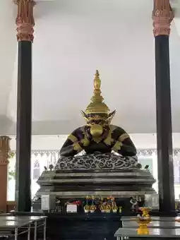This temple features a ceremony offering eight black items, such as black liquor, black coffee, boiled eggs, black beans, and more, to worship Phra Rahu according to belief.